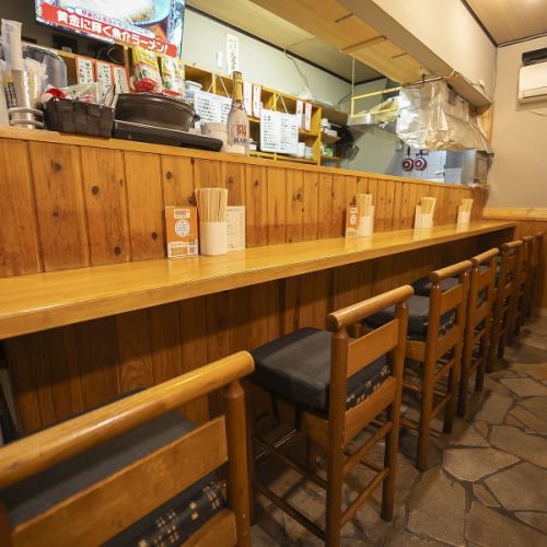 カウンター席はオーナーとの会話を楽しめる特等席◎お一人様も気兼ねなく立ち寄れる雰囲気で、日替わりのおばんざいをつまみに静かに飲むのも一興です◎日曜は12時から営業しており、大ジョッキ&メガジョッキで豪快に乾杯することもできます★